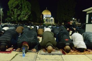 بيت لحم 2000 – أدى نحو 50 ألف مصلٍ، مساء اليوم الأحد، صلاتي العشاء والتراويح في رحاب المسجد الأقصى، رغم القيود والإجراءات المشددة التي فرضتها قوات الاحتلال الإسرائيلي على دخول المصلين.