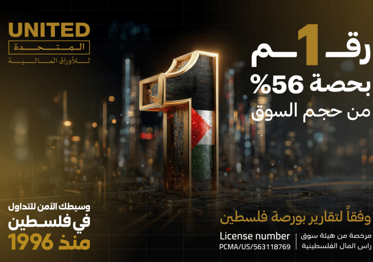 مال واعمال المتحدة للأوراق المالية تحقق المركز الأول في حجم التداول لعام 2025 في سوق فلسطين بيت لحم 2000 – حققت الشركة المتحدة للأوراق المالية المركز الأول في حجم التداول لعام 2025 على مستوى الشركات الأعضاء في... 4 يناير, 2026 1:04 م