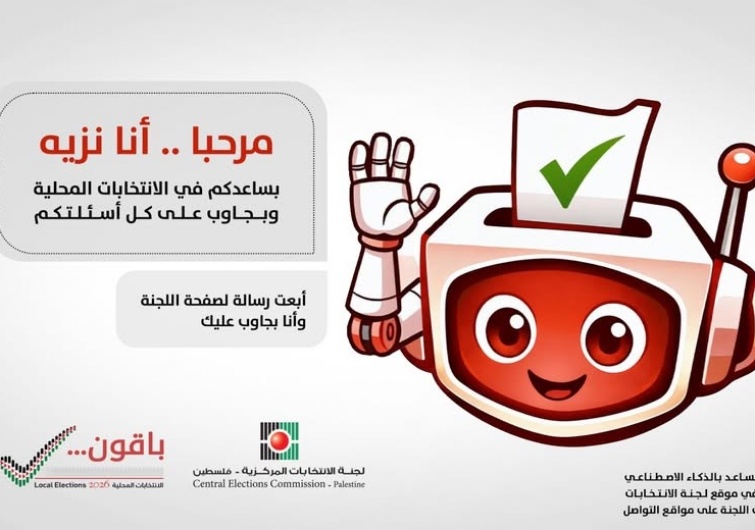 محلي نزيه” مساعد ذكاء اصطناعي طورته لجنة الانتخابات للإجابة عن تساؤلات المواطنين حول الانتخابات المحلية... بيت لحم 2000 – منذ تلقيها قرار مجلس الوزراء بتنفيذ الانتخابات المحلية في كانون اول 2025، أطلقت لجنة الانتخابات المركزية... 5 فبراير, 2026 7:30 م
